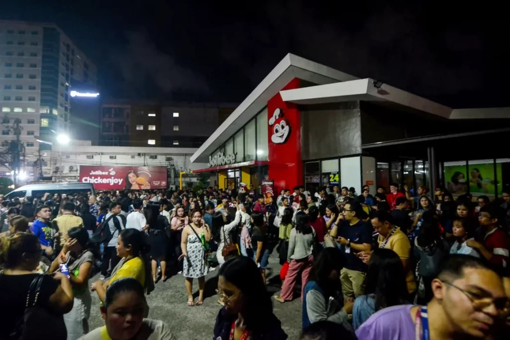 Personas reunidas en una calle tras el terremoto en Cebú, en el centro de Filipinas, el 30 de septiembre de 2025.Alan Tangcawan/AFP/Getty Images