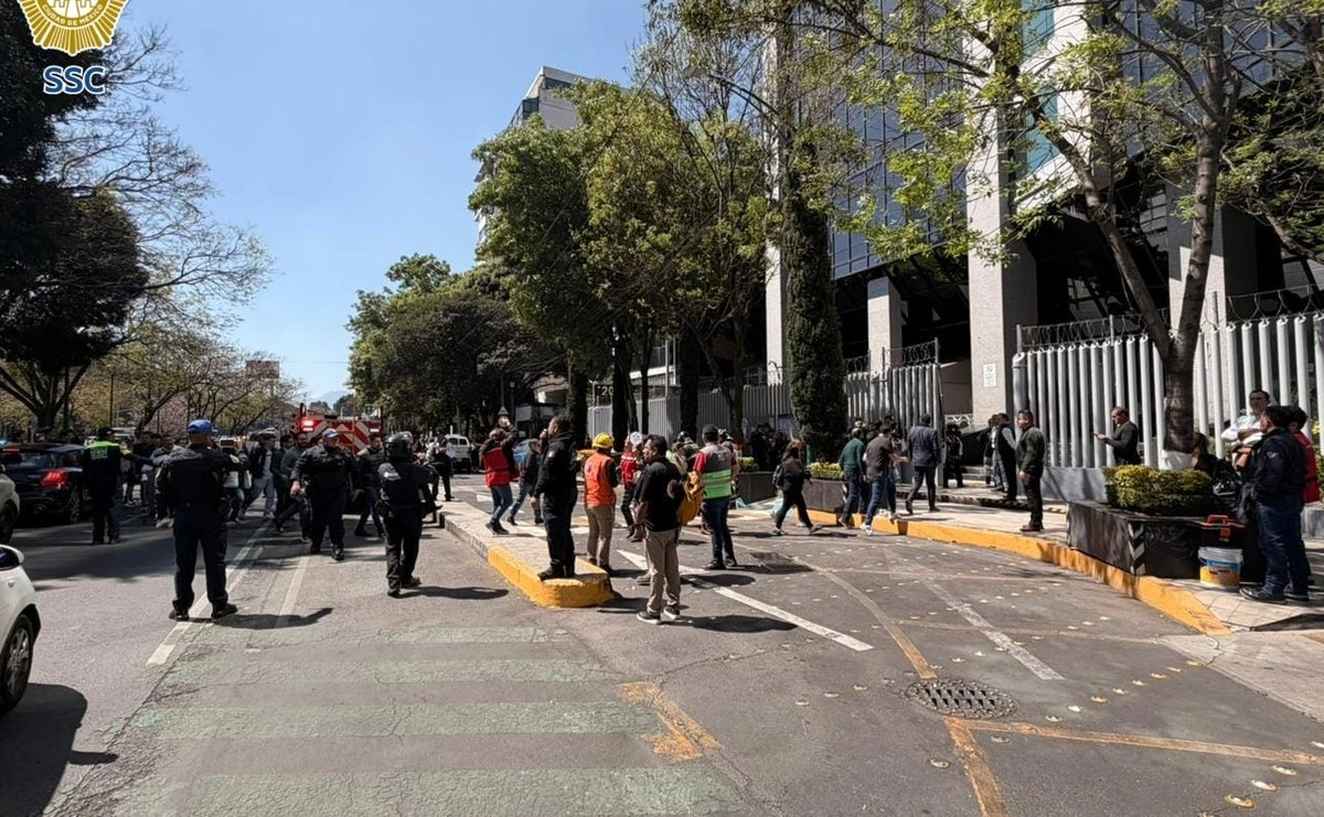 Uniformados apoyaron a evacuar a los trabajadores y realizaron la revisión de todas las zonas del edificio, estacionamientos, baños, oficinas, entre otros. Foto: @SSC_CDMX