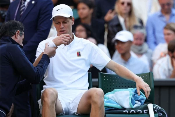 El italiano Jannik Sinner recibe atención médica durante el partido ante el búlgaro Grigor Dimitrov, el 7 de julio de 2025. Foto Afp El número uno del ranking masculino, el italiano Jannik Sinner, canceló su sesión de entrenamiento de este martes, aumentando los temores de que una lesión de codo le aparte de la carrera por su primer Wimbledon. El italiano se dañó la articulación el lunes, tras una caída durante el primer juego de su duelo de octavos de final contra Grigor Dimitrov. Sinner perdió dos sets contra el búlgaro antes de que Dimitrov tuviera que retirarse por lesión. Después del encuentro, Sinner dijo que se sometería a una resonancia magnética en el codo para evaluar el daño. «Fue una caída desafortunada», dijo Sinner. El tres veces ganador de torneos Grand Slam tiene un duelo programado el miércoles, en cuartos de final contra el estadunidense Ben Shelton (número 10) en el segundo turno de la pista número 1. Nota tomada de: La Jornada