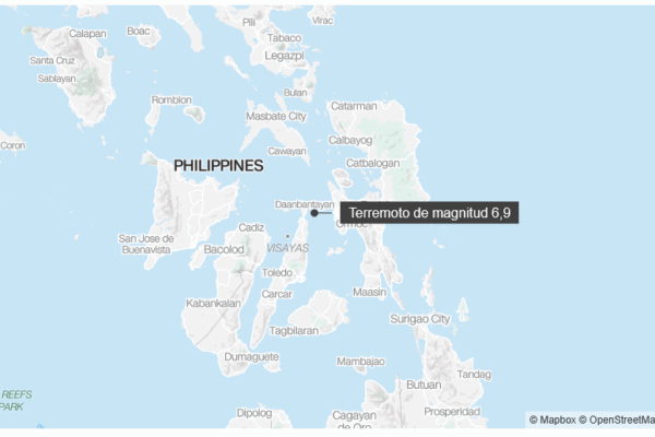 Al menos una persona falleció tras un terremoto de magnitud 6,9 en el centro de Filipinas, según las autoridades locales, mientras aumenta el temor a una destrucción considerable. El fuerte terremoto se produjo alrededor de las 22:00 hora local, según el Servicio Geológico de Estados Unidos (USGS), a tan solo 10 kilómetros (6 millas) bajo el agua, justo al oeste de Palompon, Filipinas, y cerca de la ciudad de Bogo, en la provincia de Cebú. Un terremoto de esta intensidad en la región podría causar víctimas y daños considerables a estructuras deficientes, según sugieren los primeros modelos de sondeo. El Instituto Filipino de Vulcanología y Sismología (PHIVOLCS) emitió una alerta de tsunami de nivel naranja en las provincias de Leyte, Biliran y Cebú, en la que recomienda a la población mantenerse alejada de las costas e insta a los residentes de la zona a evacuar tierra adentro. Personas reunidas en una calle tras el terremoto en Cebú, en el centro de Filipinas, el 30 de septiembre de 2025.Alan Tangcawan/AFP/Getty Images Las autoridades de Bogo anunciaron en Facebook que se estaban realizando las labores de rescate. Más de medio millón de personas sintieron fuertes temblores en las Islas Bisayas, que incluyen Cebú, Bilirán y Leyte en el centro de Filipinas, según estimaciones de los modelos del Servicio Geológico de Estados Unidos (USGS). Un temblor muy fuerte provocará “daños considerables en estructuras deficientemente construidas o mal diseñadas”, así como “daños de leves a moderados en estructuras convencionales bien construidas”, según el USGS. Los peores temblores probablemente se sintieron en la zona norte de las islas de Cebú y Leyte.