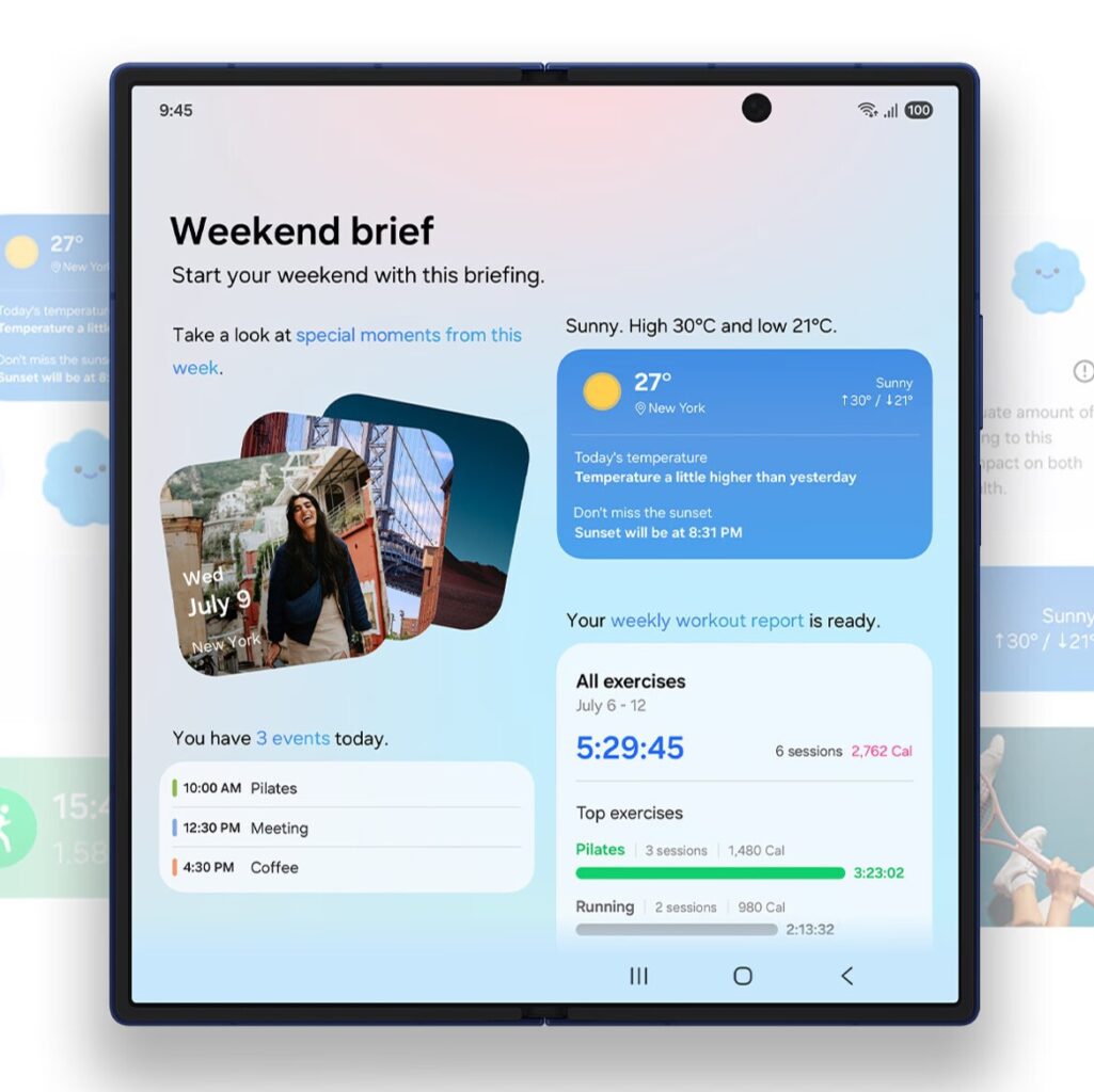 Para la potencia, el Galaxy Z Fold7 tiene el Snapdragon 8 Elite for Galaxy, el mejor procesador de Qualcomm hasta ahora. Se acompaña de versiones con 12 o 16 GB de RAM y opciones de 512 GB y hasta 1 TB de almacenamiento. Su sistema operativo es One UI 8 basado en Android 15 e integra Galaxy AI con Now Brief y Now Bar, novedades presentadas con los Galaxy S25, más nuevas funciones como asistente de edición, vista lado a lado en edición de fotos, y borrador de audio en vivo, sin entrar a la herramienta de edición.