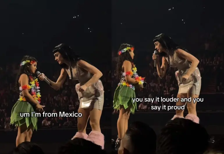 Durante el show, Perry invitó al escenario a una niña de unos 10 años que lucía un disfraz colorido. Al preguntarle con cariño de dónde era, la pequeña respondió de forma tímida: «de México».
