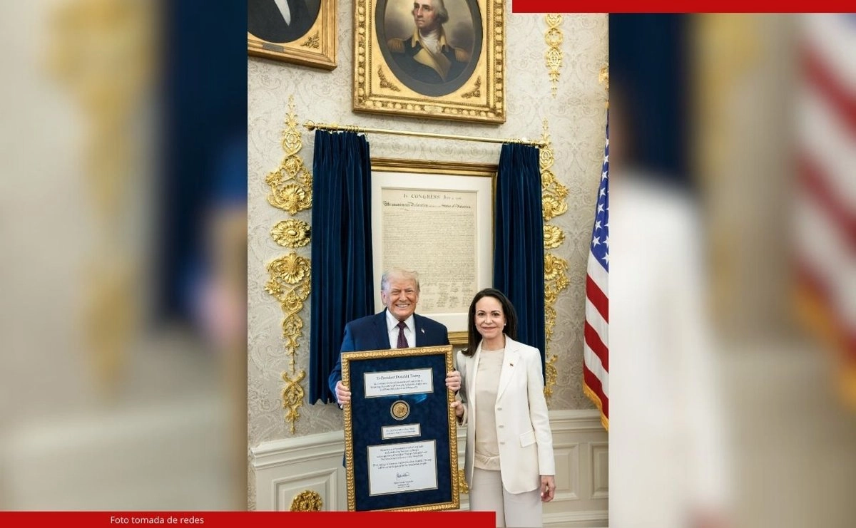 La Casa Blanca difundió una foto de Trump y Machado, con el mandatario sosteniendo un marco dorado que la exhibe, y un funcionario de la Casa Blanca dijo que el republicano tiene la intención de conservarla.