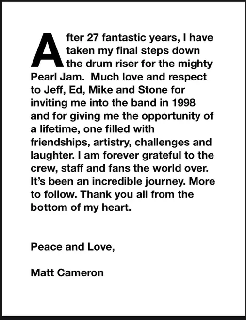 En su mensaje personal, Matt Cameron escribió: